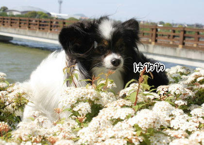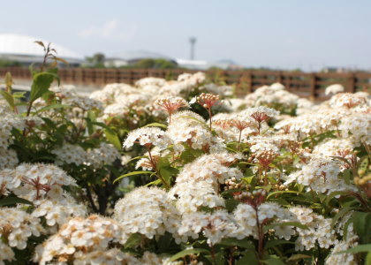 池のほとりに可愛いこでまりの花が咲いていました♪