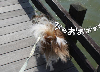 遮るもののない池の上(橋)を歩く風ちゃんは…