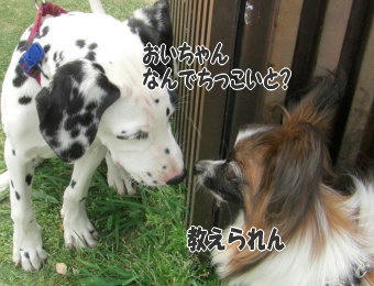 近くにいた4ヶ月のダルメちゃんにガン見されつつ、マーキングに