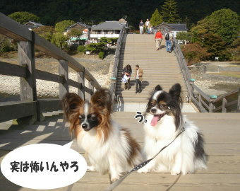 錦帯橋、実物は感動しますよー♪ぜひ一度行かれてみて下さいね~・・・かなり遠いですけど( ̄▽ ̄) あらし、橋の下を覗き込んでから急にジタバタしてました!風吹は高いとこ好きですからね~全然平気みたいです。