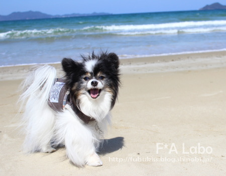 ゴキゲンだから♪と思って海をバックにオスワリさせたら