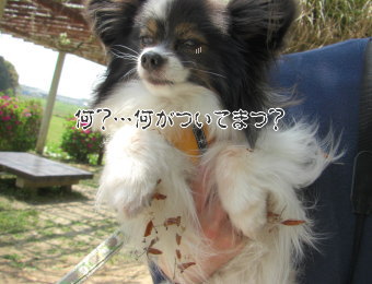 長毛のパピヨンって、いろんな物を付けて来ますよね(^^;)