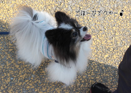 現れたパピちゃんには吠えてました。ランチの間もわんこと
