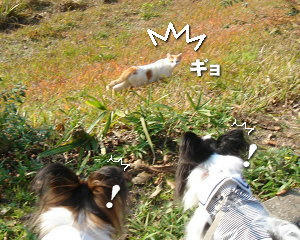 2匹を引きずるように慌ててその場を立ち去りました~(;´・`)> ふぅ