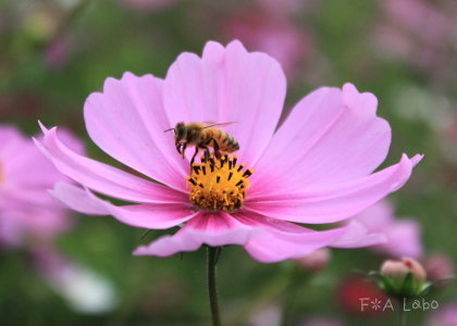 手前のコスモス、赤く見えますが実際は濃いピンク色!