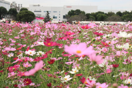 朝倉市にあるキリンコスモス園(キリンビール福岡工場の花園)