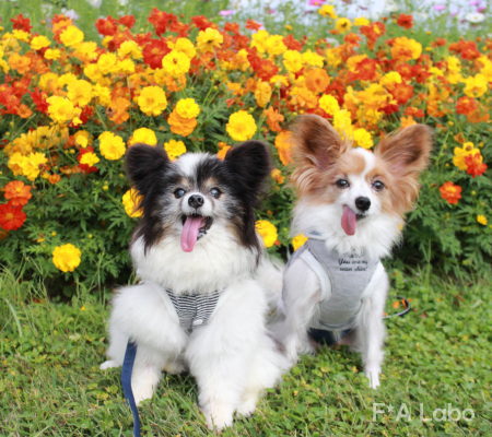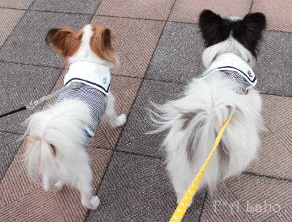 仲良く並んでお散歩しているのはウォルフィ君とあらし♪