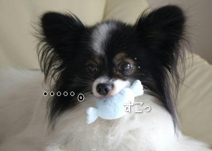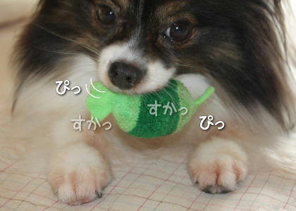 ラヴベルちゃんは音の出るおもちゃを壊しちゃうんですね!でも壊した方が常におもちゃが入れ替わって良いのかも~(^w^) あらしは壊さないので貯まる一方です。あらしも音の出るおもちゃの方が好みのようで、そういうのばかりを選んで遊んでいるようです。なので音の出ないおもちゃは、あまり日の目を見ないですね~(^.^; 人が相手になって遊べばどんなおもちゃでも大喜びで遊びますけどね、風吹と違って(笑)風吹はおもちゃはとっくに卒業したようです。