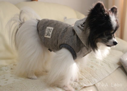 ちなみにコレも杢調。フード部分もグレーの杢調を