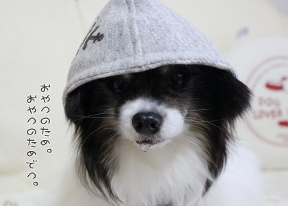 フードを被ったあっくん…辛抱(笑)してるんですねー(^o^ゞ でも…おヨダは正直ですね~☆それを見ただけで あっくんの心の声が聞こえてきそうですよ♪