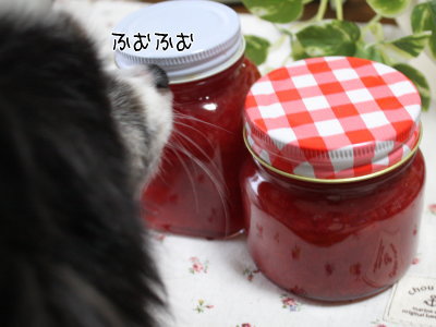 ジャムの色鮮やかさが とっても美味しそう♪(ささぁ~っとジャム作りされる風ママさん…尊敬です!私ならそのまま食べるとことしか考えないでしょうから~(^^ゞ)あっくんの検品もクリア(笑)して美味しく頂けそうですね(^ー^)