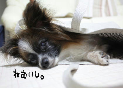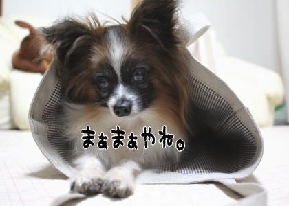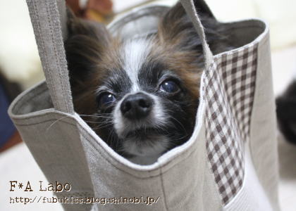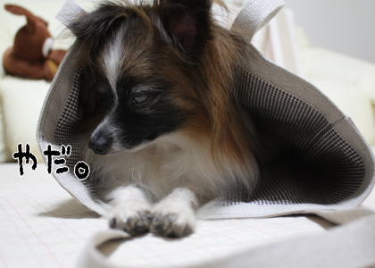 風吹もバッグには入らない子でしたよ(^w^) まだ風吹が一人っ子の頃、私の実家に里帰りするのに、キャリーバッグに入れる必要に迫られて、猛特訓したのです~!最初はおやつや好きなおもちゃで釣っても警戒しまくりで、おやつだけ取ってすぐに出て来てました。でも始めはバッグに慣れさせるだけ。少しでも入ったらエライ!って褒めて~~そのうち入っている時間を長くして行って、上手に入っていられたらご褒美をあげたり褒めちぎったりしてバッグに入ると嬉しい!って覚えさせたんです~。そのうち袋物、箱、入れそうなものにはカゴでもバケツでも鍋でも入るようになってました(^・^;) 手作りの心地良さなどはあまり関係ないような気もしますが・・・(笑)