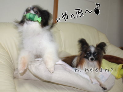あらしのいい笑顔を引き出すには、おやつよりおもちゃ(特にあめちゃん)