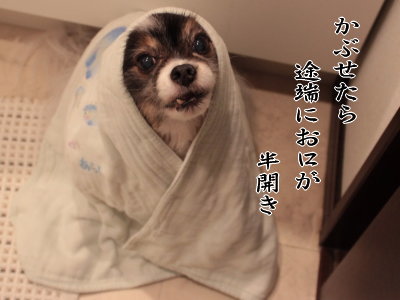 急に洗われた上に苦手なほっかむりをされて…( ̄m ̄*)