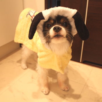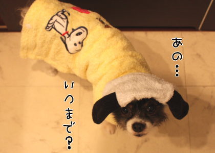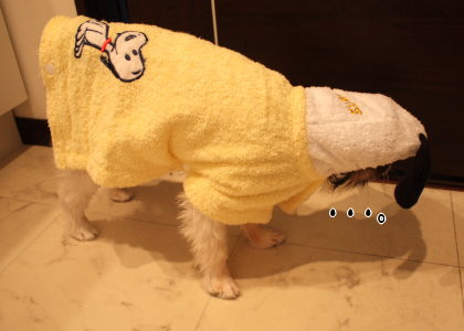 風ちゃんのバスローブを拝借して今日のほっかむりをば!