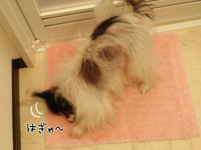 洗われる時はおとなしいのにセルフドライは父ちゃん譲りで激しいあっクン。