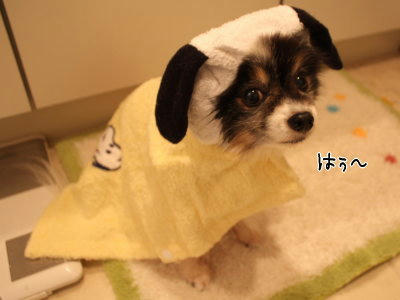 シャンプー後バスローブに凹むあっクンでした( *´艸`)クス