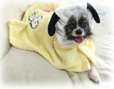 見てごらん。バスローブ着せられようとも満面の笑みを見せる風ちゃんを。