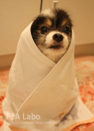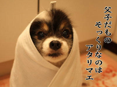散々父ちゃんで拭き拭きしたあっクンですが、ドライヤーはしなくちゃねw