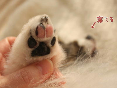 この年齢になると肉球もカサカサ、アンヨの肉球にはひび割れも見られる