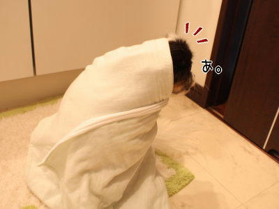 どうやら湯上りで薄毛なあっクンには涼し過ぎて暖を求めたっぽい。