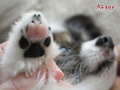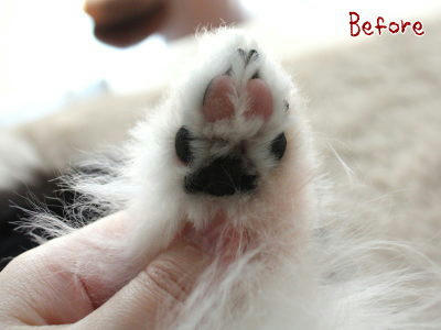 あっクンのシャンプー前を撮り忘れたので代わりに肉球お手入れ前後でもw
