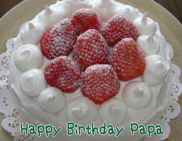 バースデーケーキ、おいしそうですね♪ケーキ屋さんのケーキみたい。さすがセンスがいいですね(>_<)♪パパさんへの愛情がビシバシ伝わってきます★パパさん、風あらに甘いんですね。そうでしょうね~こんなに可愛いわが子ですもん♪♪