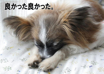 (*^m^*)パパにお祝いありがとうございます~!ボトルキーパー可愛いでしょ~♪白黒パピちゃんしかなかったけど、パパは「うちには白黒がおらんけちょうどいい」と喜んでくれました(^w^) 風あらは…どこにもお出掛けできず散歩もお休みで、切なく催促してたけど最後は諦めてフテ寝してましたよ(^.^; 明日にでも血液検査の予定なので、変わったものを食べさせるのは控えていたんですよね~それがなければパパの誕生日に便乗して、おやつを奮発するとかしたのだけど…(^・^;)