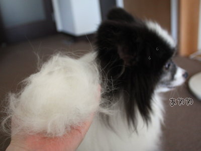 エルビスの毛もすいて少々短くなってます。