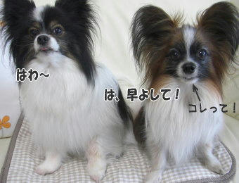 風吹は賢いから、準備段階だけでも勘付くんですよ(^・^;) あらしはノンキ君です( *´艸`*) さすがでしょ(笑)風吹の写真、文字なしのを下のURLに置いときましたのでお持ち帰り下さい♪親バカは嬉しいです(ノ∀`*)