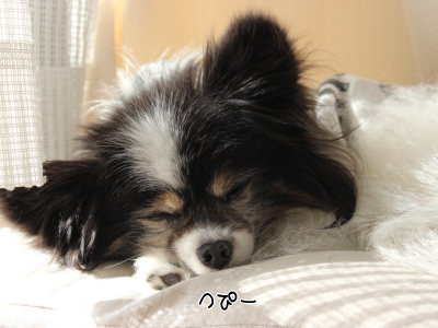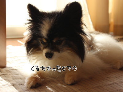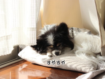 帰宅後、カーテンに囲まれた日なたで寝おちるあっクンw