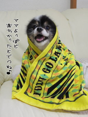グッズタオルにくるまったあっくんが眩しい~です♪(*≧m≦*)