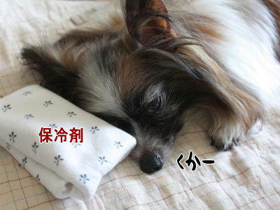 仕方がないので寝入ったところに ソッと添えて少しでも冷やすようにしています。