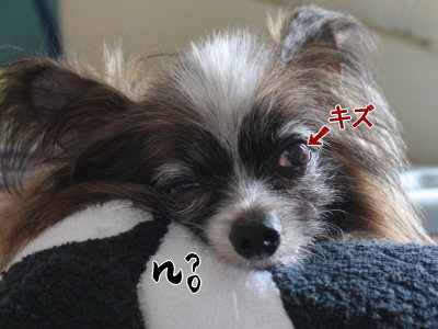 風吹はこれで結膜炎2回目、キズは3回目ですね~。目が大きい分
