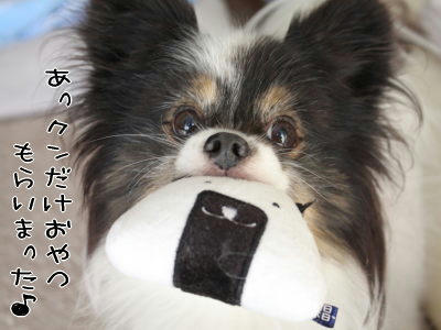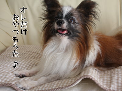 たんまりおやつをもらったあっクンです。
