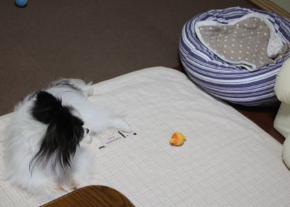 その代わり今度は、風ちゃんのお気に入りだったベッドをジッと見つめる姿を