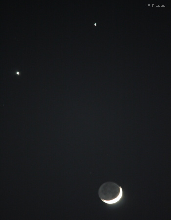 金星と木星が最接近し、その下の三日月とセットで笑顔に見えました♪