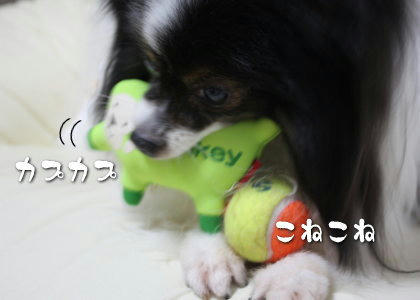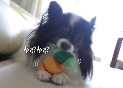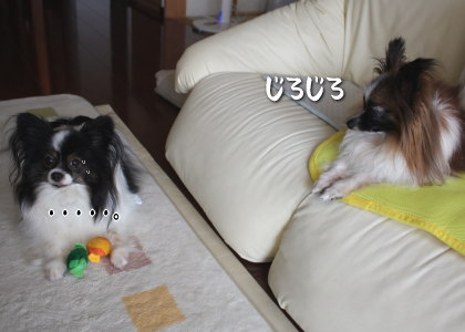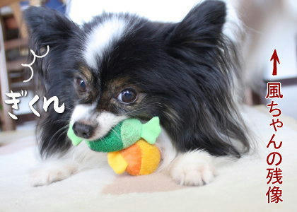 当然おもちゃを咥えたまま風ちゃんのジャマ追っかけをしてました(゜∀゜)