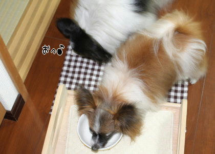 日頃威張りの風ちゃんですが、食事中にあっクンが隣に来ていても、
