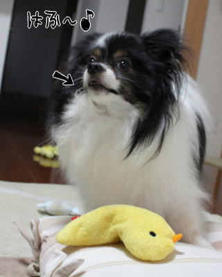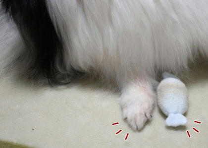 このおもちゃ、咥えると「ぷぴっ」と音が鳴るのですが、死守するうちに