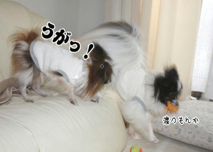しつこく追い回す風ちゃんからなんとか死守するあっクン。