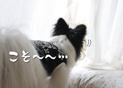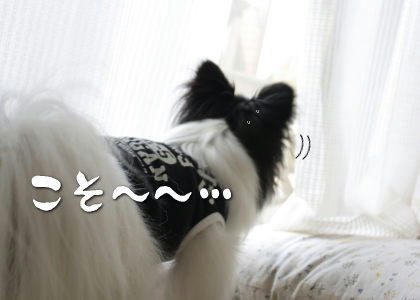 突然ベランダに向かって「がるる~わふ!」っと威嚇するあっクン。