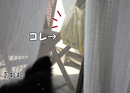 ただのゴミ袋。風で飛ばないようにイスにぶら下げておいたのですが…
