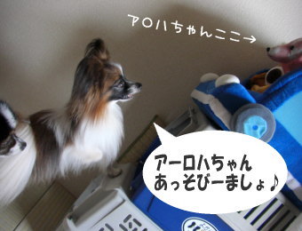 どんなに頑張ってみてもアロハちゃんと遊ばせてもらえない風ちゃん。