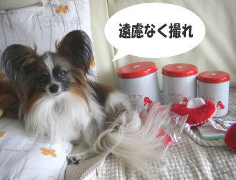 お散歩バッグ、おやつ山盛り、笛付きボールをいただきました♪