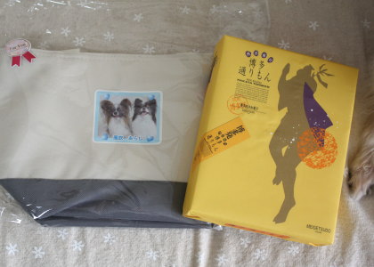 風あらがプリントされたバッグと博多通りもんヾ(≧▽≦)ノきゃー嬉しい♪