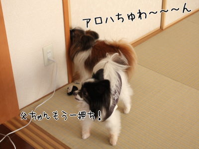 アロハちゃん出したら出したで今度は「押さえろ」と騒ぐ( ̄ェ ̄;)