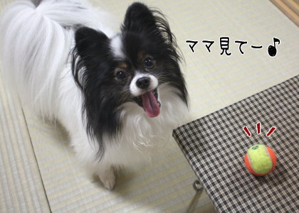 アイロン台にボールを乗っけて嬉しそうなあっクンが( *´艸`*)