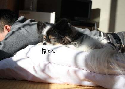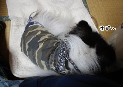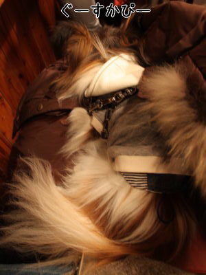 そして風ちゃんは…ママの右隣、ダウンコートの上でまたまた爆睡!!