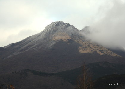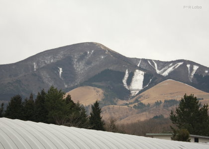こちらが雪化粧の湧蓋山。前日の快晴とはうって変わって曇天…